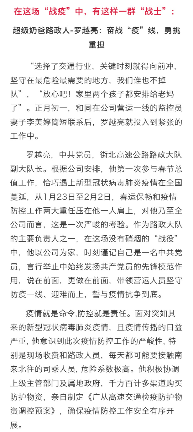 疫情面前,有这样一群"可爱的人"—记街北高速防疫"战士"